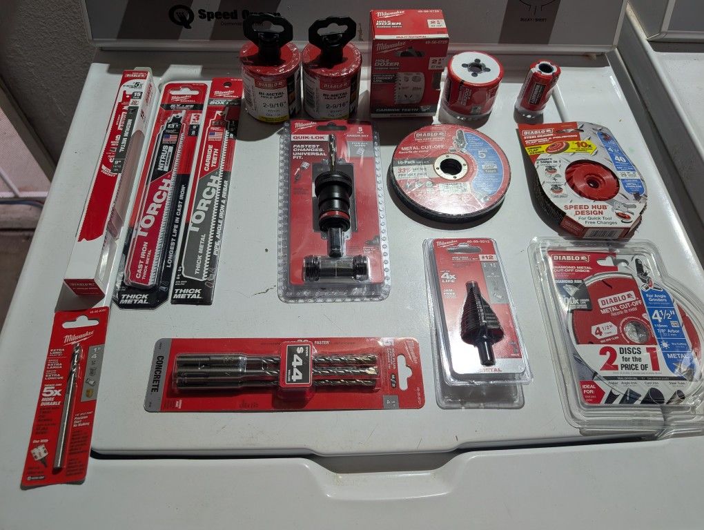 New sawzall blades,hole saws,arbor,step bit,grinding wheels, diamond blade ,etc