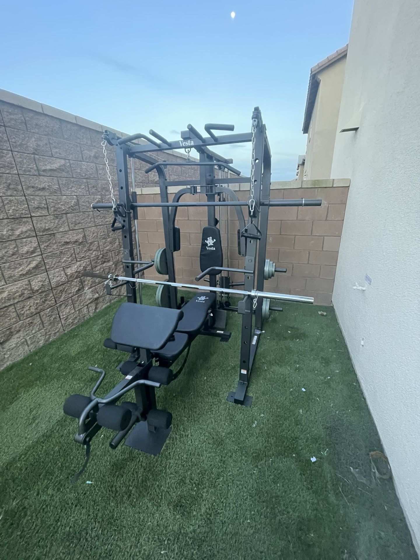 Vesta Fitness Smith Machine 1001 w/Bench Attachment | 230lb Bumpers Olympic Weights | 7ft Olympic Bar | Gym Equipment | FREE DELIVERYđźšš