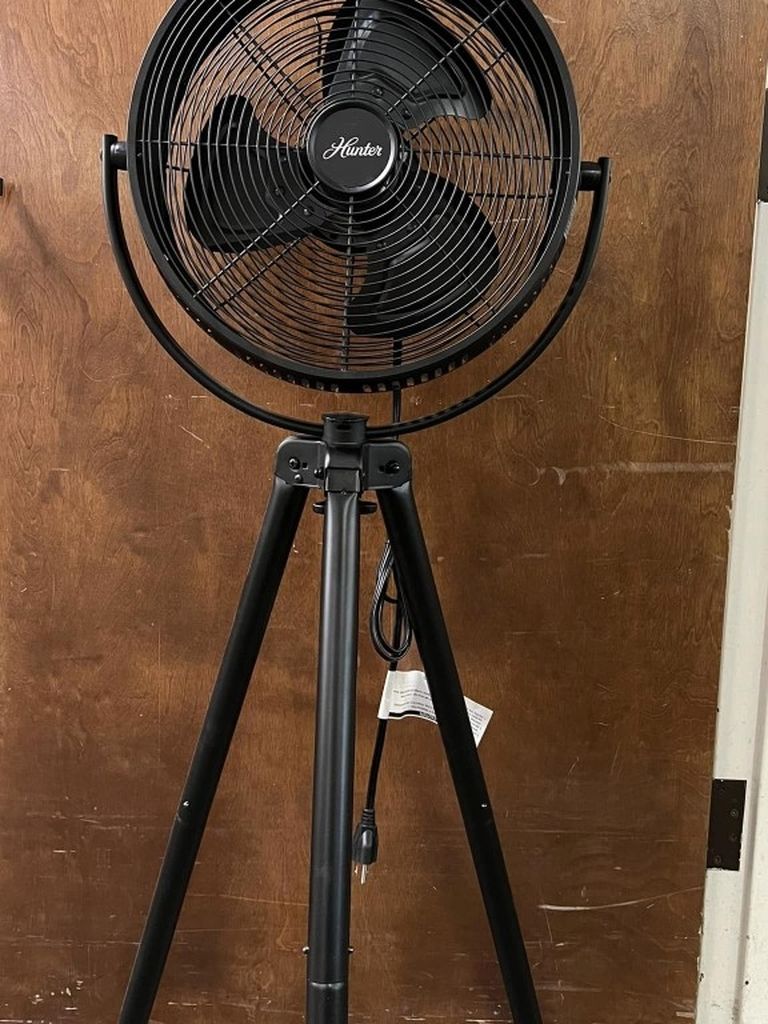 Hunter Metal Tripod Fan, Adjustable Tilt, 3 Speeds, 47" Tall. New in Box