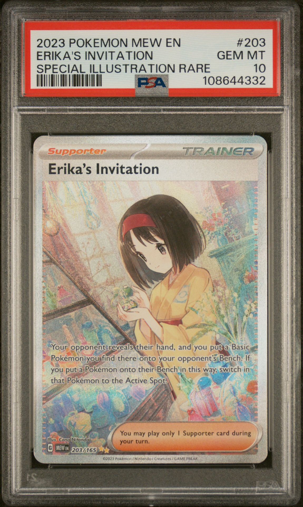 2023 POKEMON MEW EN ERIKA'S INVITATION SPECIAL ILLUSTRATION RARE PSA GEM MINT-10