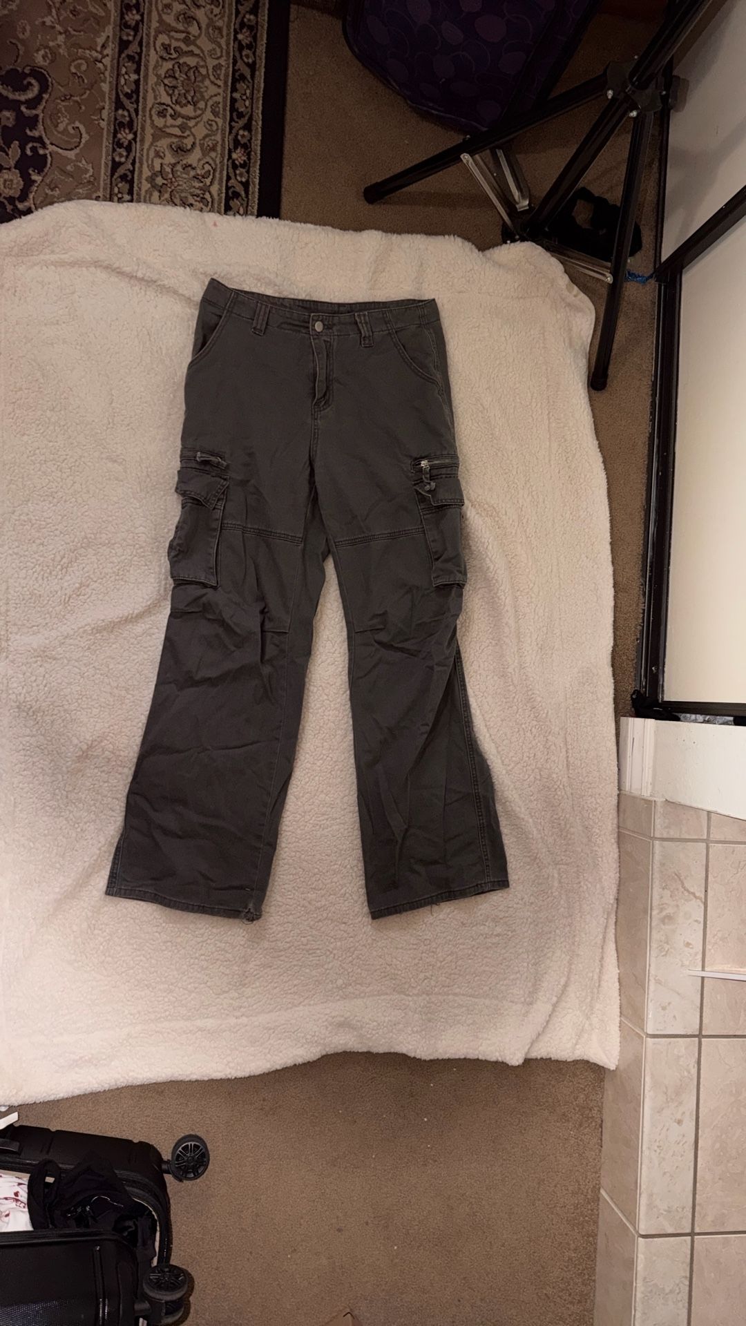 Selling a pair of women’s dark cargo-style pants with multiple pockets and a structured fit. Perfect for casual outfits, travel, streetwear, or everyday wear. ✔ Functional cargo pockets ✔ Comfortable, durable material ✔ Neutral dark color (easy to style) ✔ Gently worn / great condition Easy to dress up with a fitted top or keep casual with sneakers. Pick up in Long Beach. Check out my other items