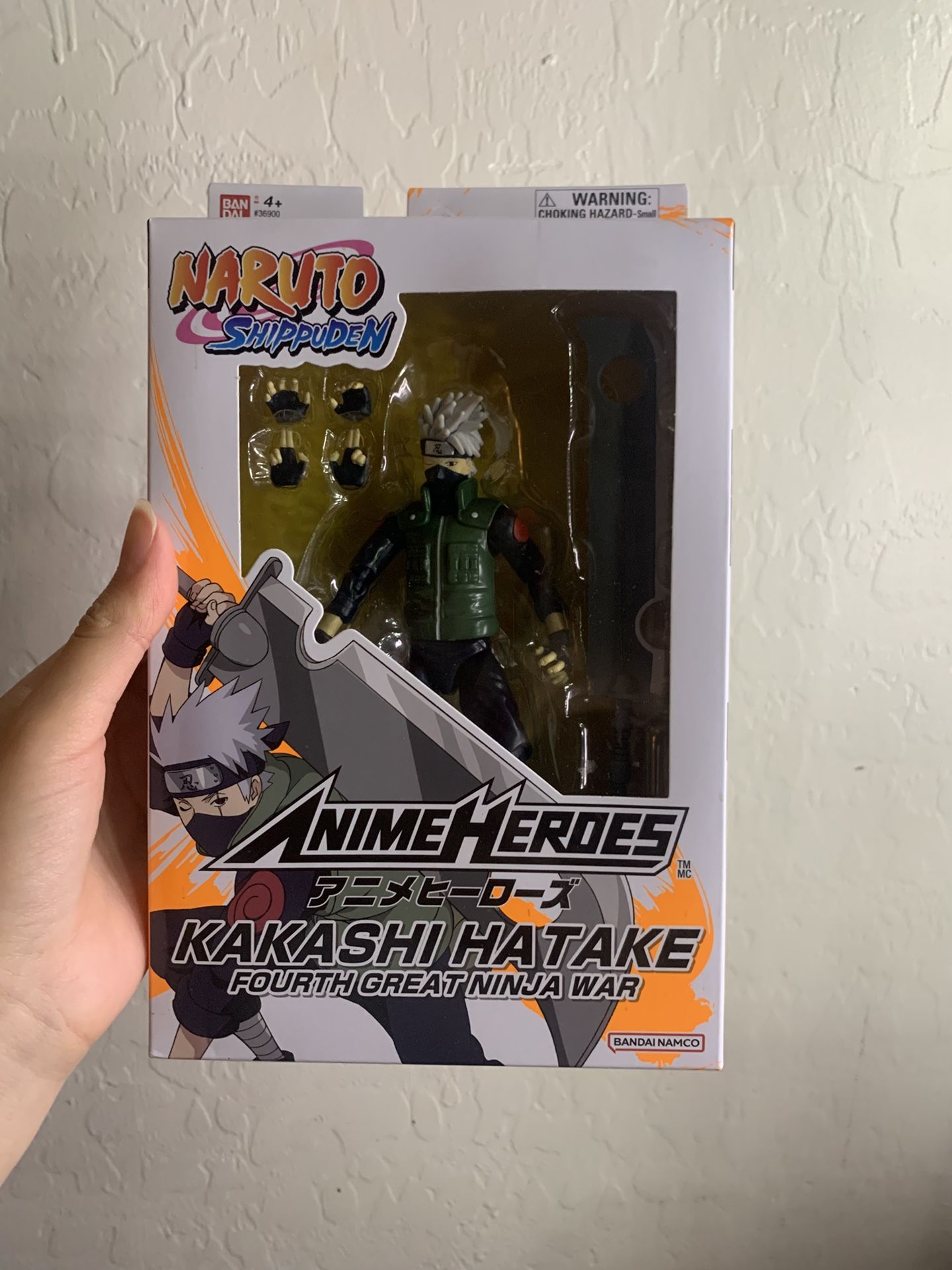 A Kakashi sensei figure where you can change the hands and have as a out of the box figure with a holographic Naruto sticker with Kakashi sensei and Naruto in good condition can meet you anywhere that works best for you!