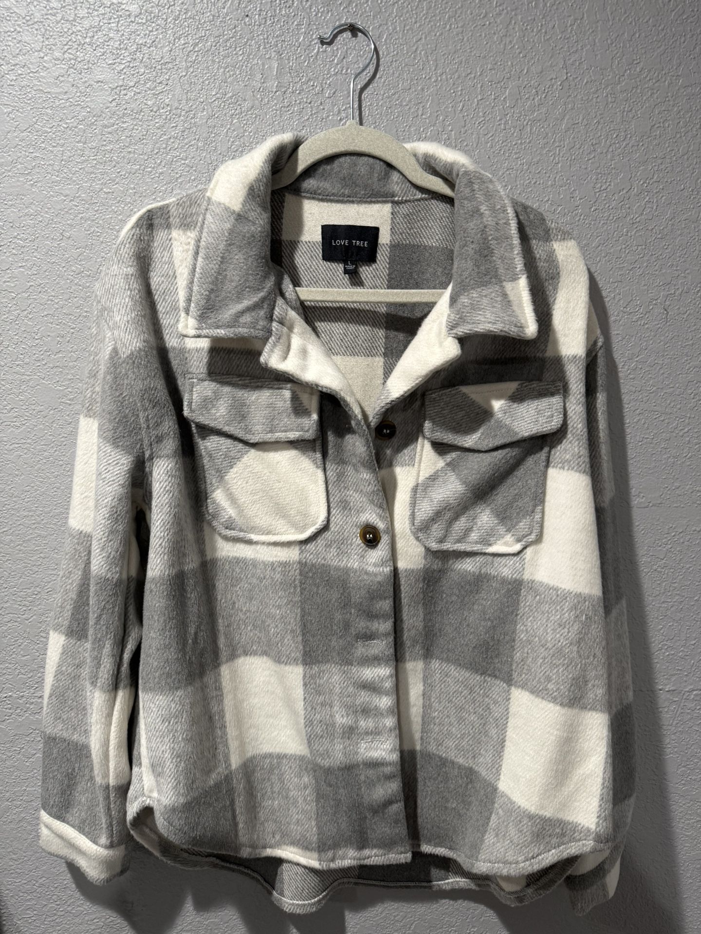 grey and white plaid shacket
