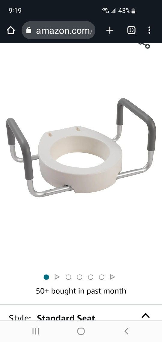 Description The Drive Medical premium toilet seat riser with handles is designed to aid people in getting up and sitting down. Our elevated toilet seat adds an extra 3.5-inches of height to the toilet and includes metal armrests that can be easily added or removed per individual user requirements. It fits on most elongated and standard toilets and installs without tools.