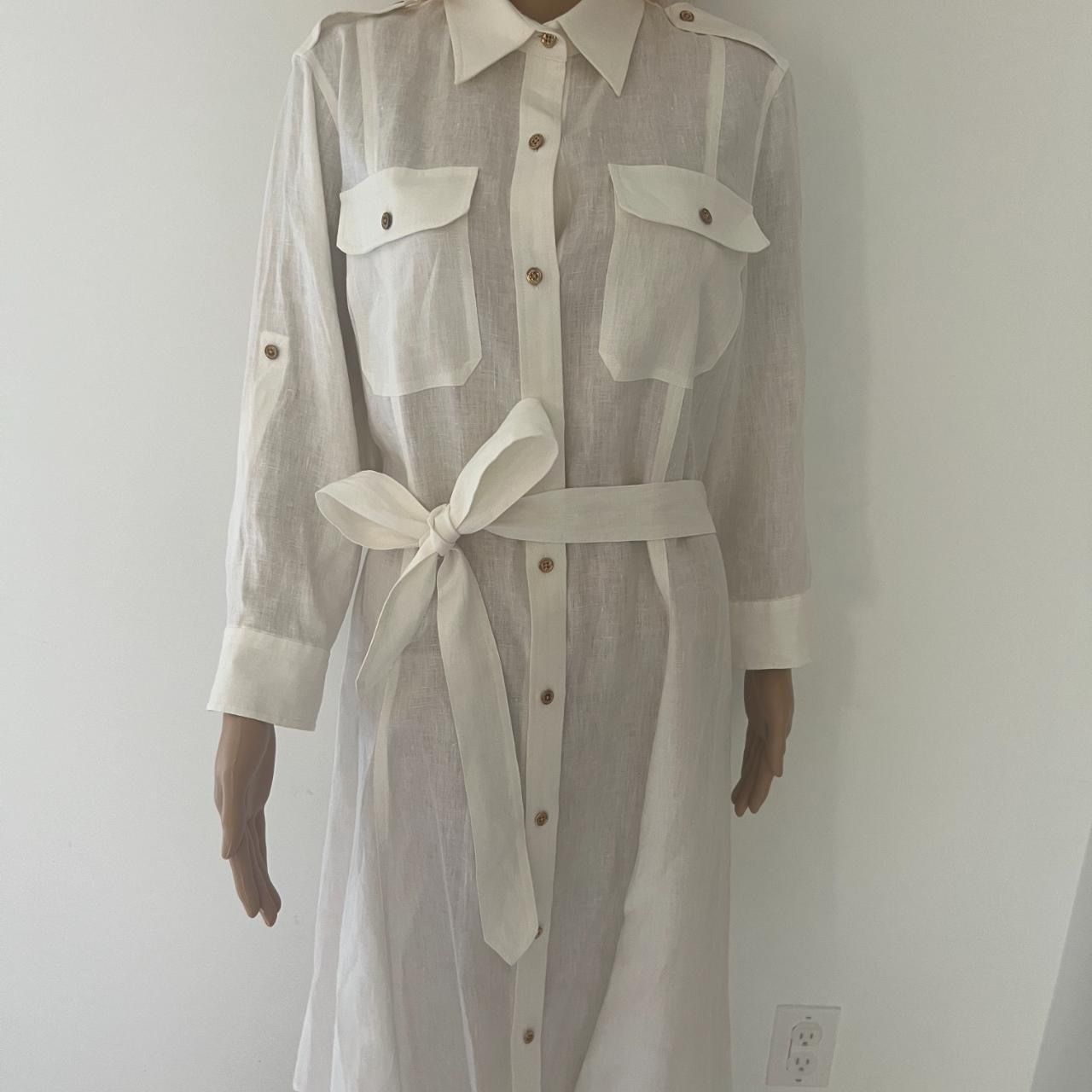 Button front Shoulder tabs Chest pockets Belted Side slit Long sleeves which can be rolled up Midi length Excellent condition