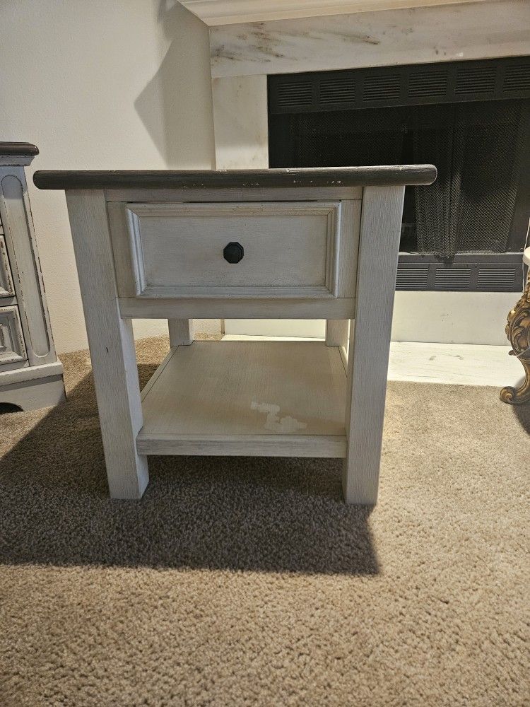 Solid wood with storage compartment. Measures are in picture. Around 25in. Height and 21in. Length