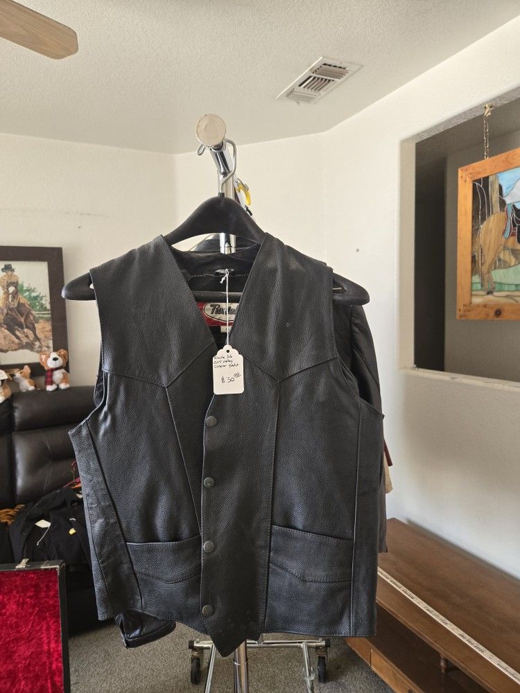 Mens leather vest Route 66 is the maker. Size 38 Has 1 patch on it One patch was taken off (see photo) Just $30 cash Non smoking home Pick up near Ironwood and Broadway in Apache Junction Or Signal butte and Williams field in Mesa