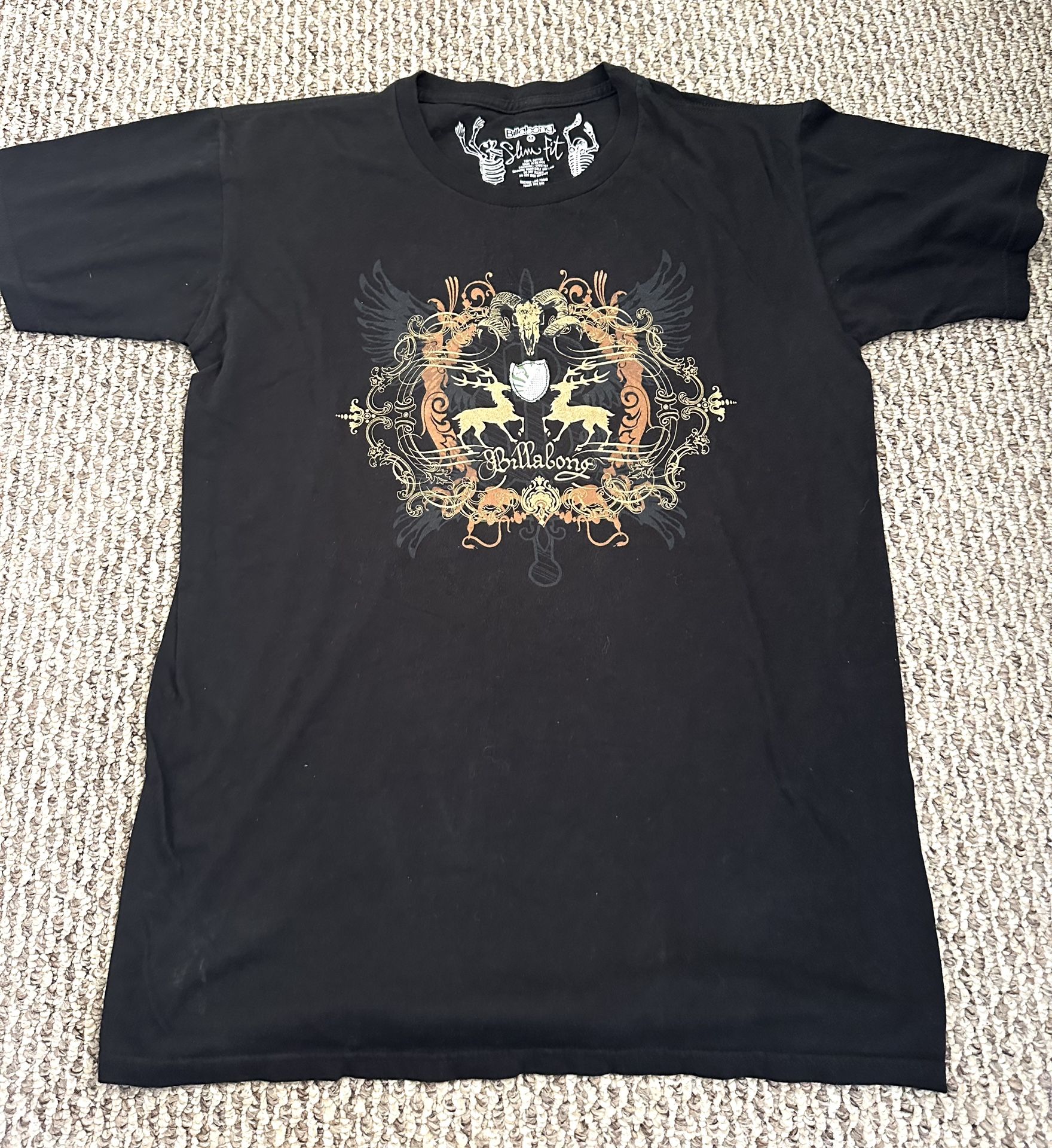 Billabong Y2K Surf Skate Black Graphic Shirt Slim Fit Adult Size Medium