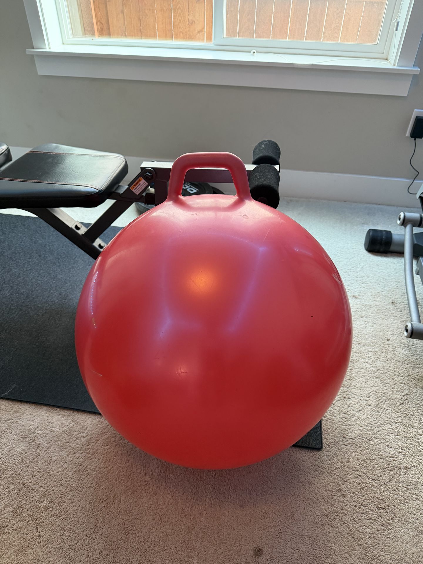 Size: Features a large 29-inch diameter suitable for adults. Material: Made of sturdy PVC for indoor or outdoor jumping activities. Features: Includes a handle for balance. Use: Designed to improve balance and coordination while providing a fun workout. Cash or Venmo only. Pick up near Woodinville High School. Smoke-free home