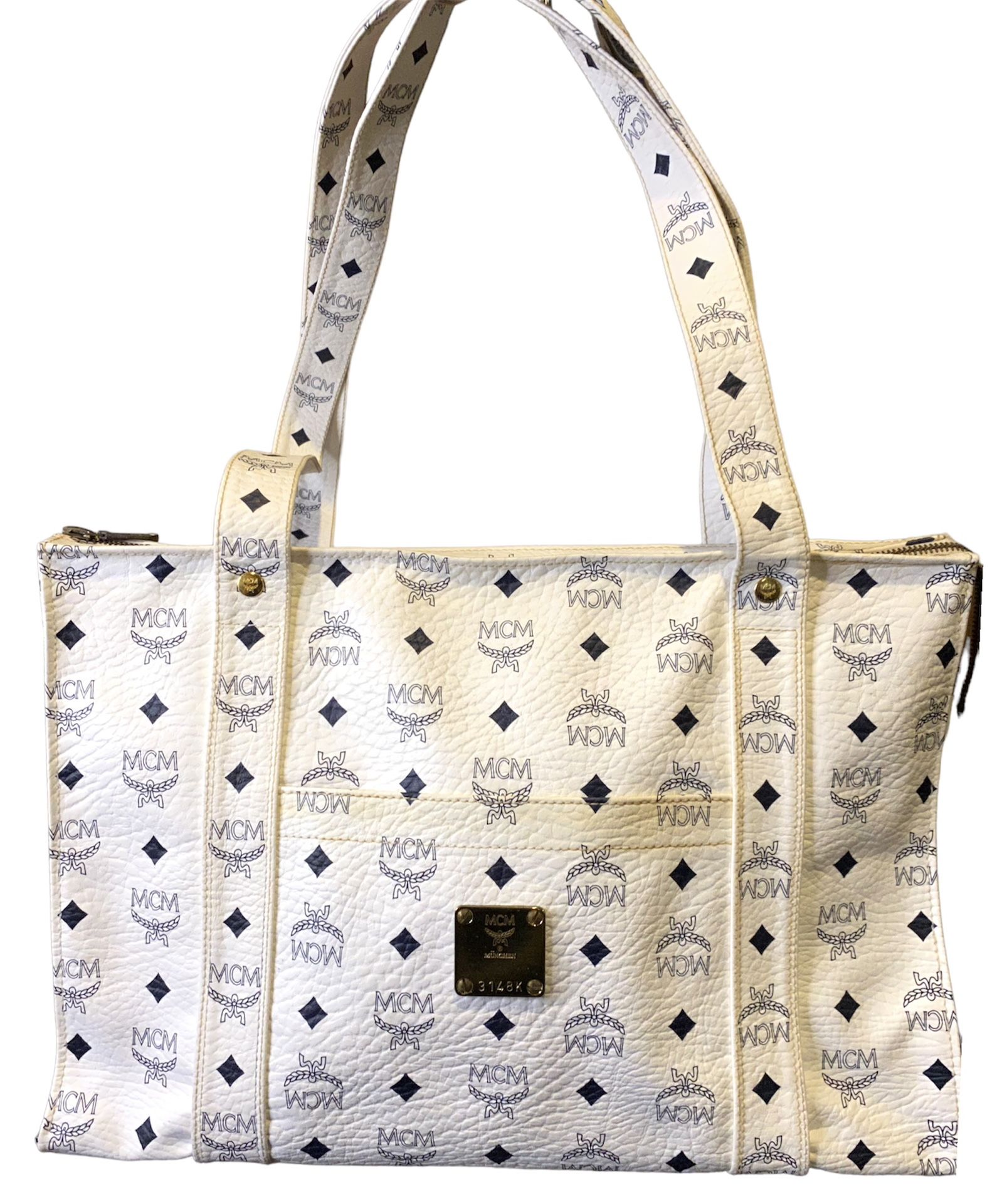 MCM White Visetos Leather Tote Bag