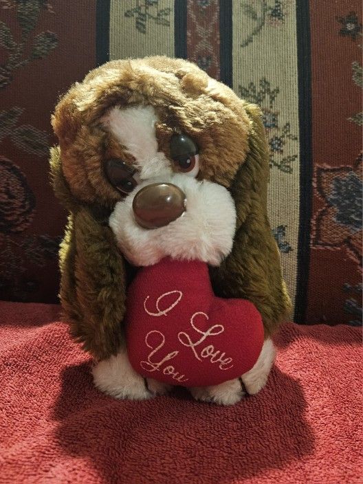 VALENTINES DAY VTG "BAXTER" STUFFED PLUSH ANIMAL TOY APROX 8"INCHES PRE-OWNED IN GOOD CONDITION
