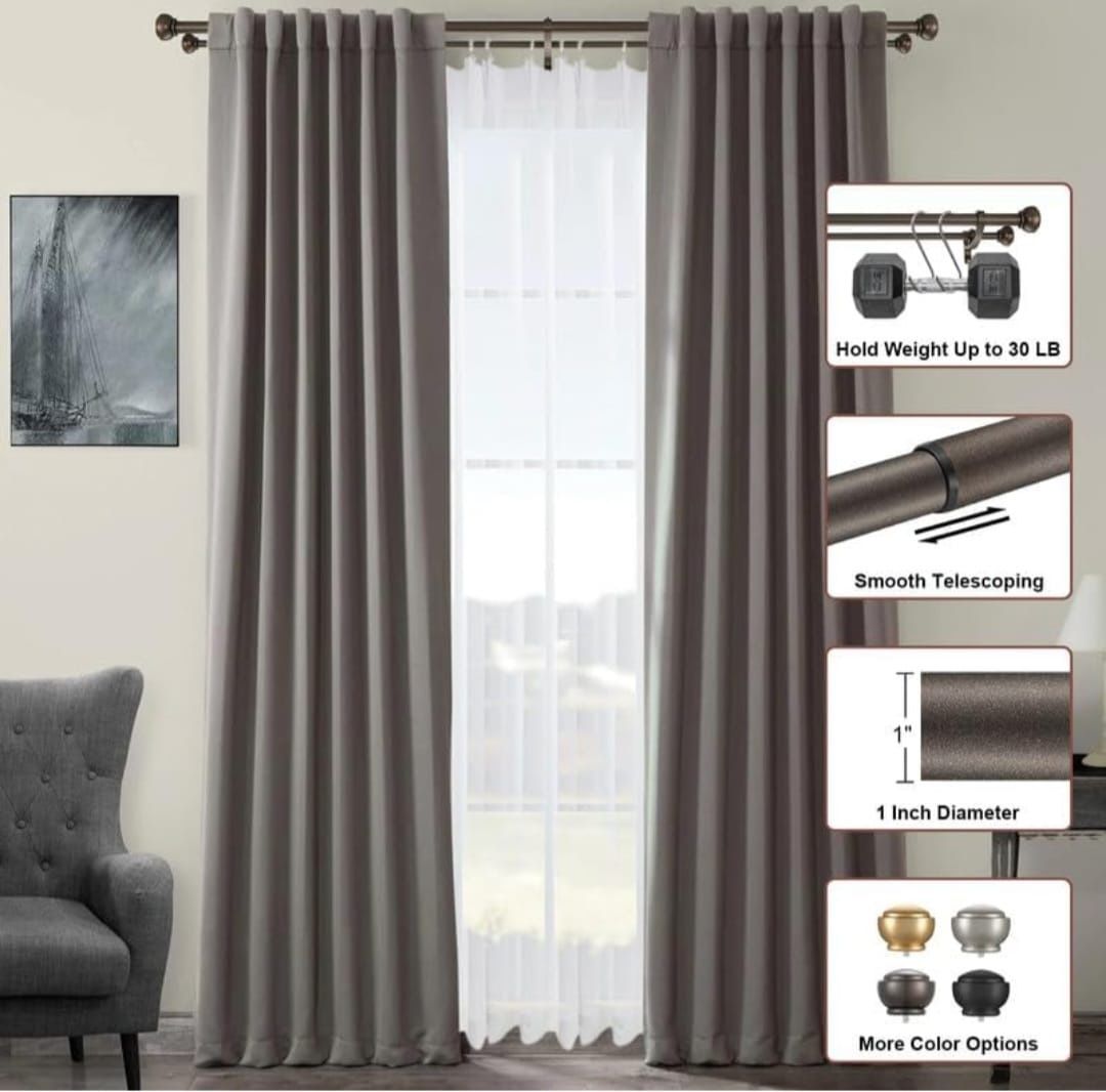 Antique Brown Curtain Rods for Windows 28-48 Inch, Decorative Double Drapery Rods with Cap Finials, 1-Inch Front, 5/8-Inch Back, Adjustable Dual Rods Open box, brand new. First come, first served. West Village/Jersey City.