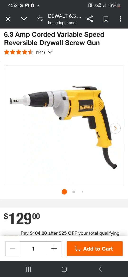 DeWalt - 6.3 Amp corded variable speed reversible drywall screw gun