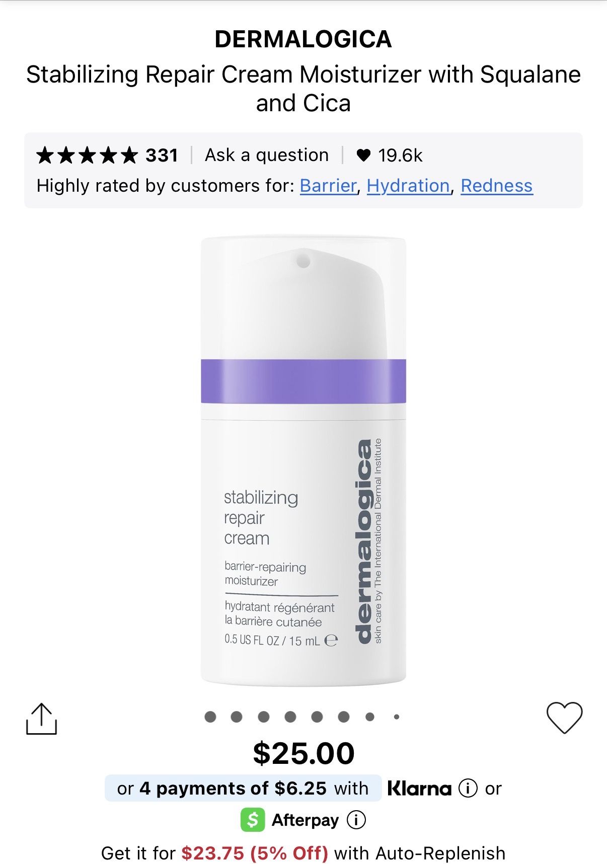 Brand new, unopened Dermalogica Stabilizing Repair Cream from Sephora. Purchased back in December and realized an ingredient listed was on my list of allergies. Didn’t have time to return within the return window time. Feel free to ask any questions!