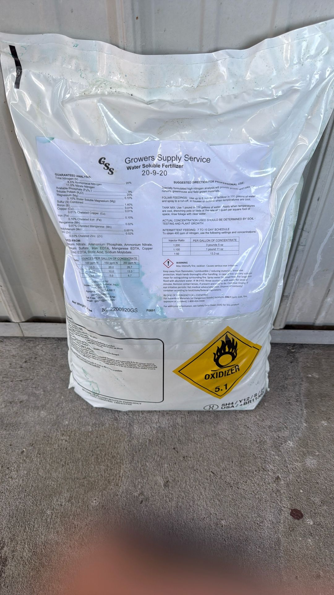 20-9-20 water soluble fertilizer …25lb bag…. Cost 80$ on amazon so the lowest I’ll take is 40$