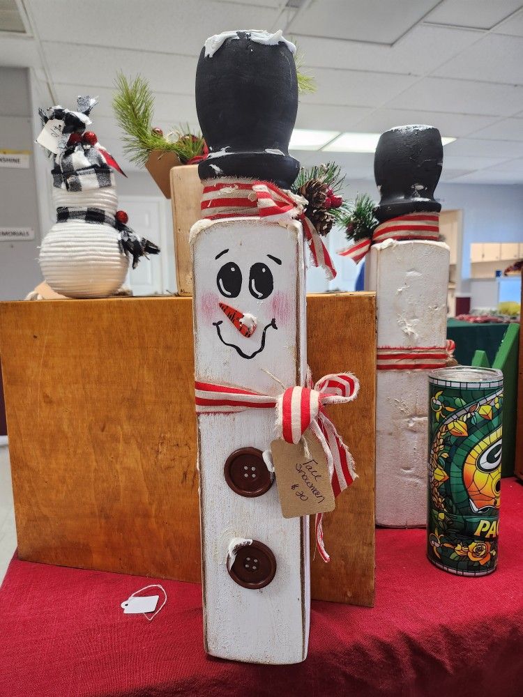 Tall Wooden Snowman .$20 Round wooden Snowman Ornament.. $10 Wooden Reindeer Ornament ..$10