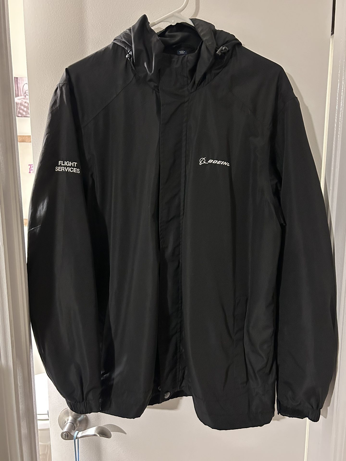 Boeing Flight Services Rain Jacket Men's Medium Black Windbreaker With Tear