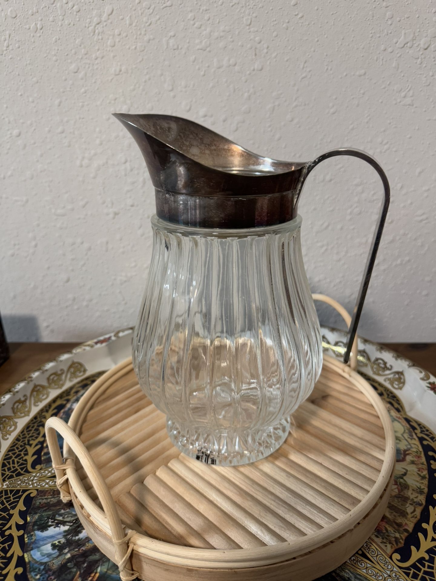 Vintage Italy Godinger Silver Plated Lead Crystal Water Pitcher