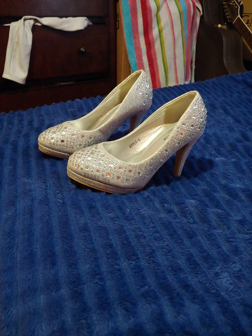Heels. Size 6 1/2. Heels silver plateado sparkly 20 dollar heels gold glitters 15 dollar appximately 3 inches heels