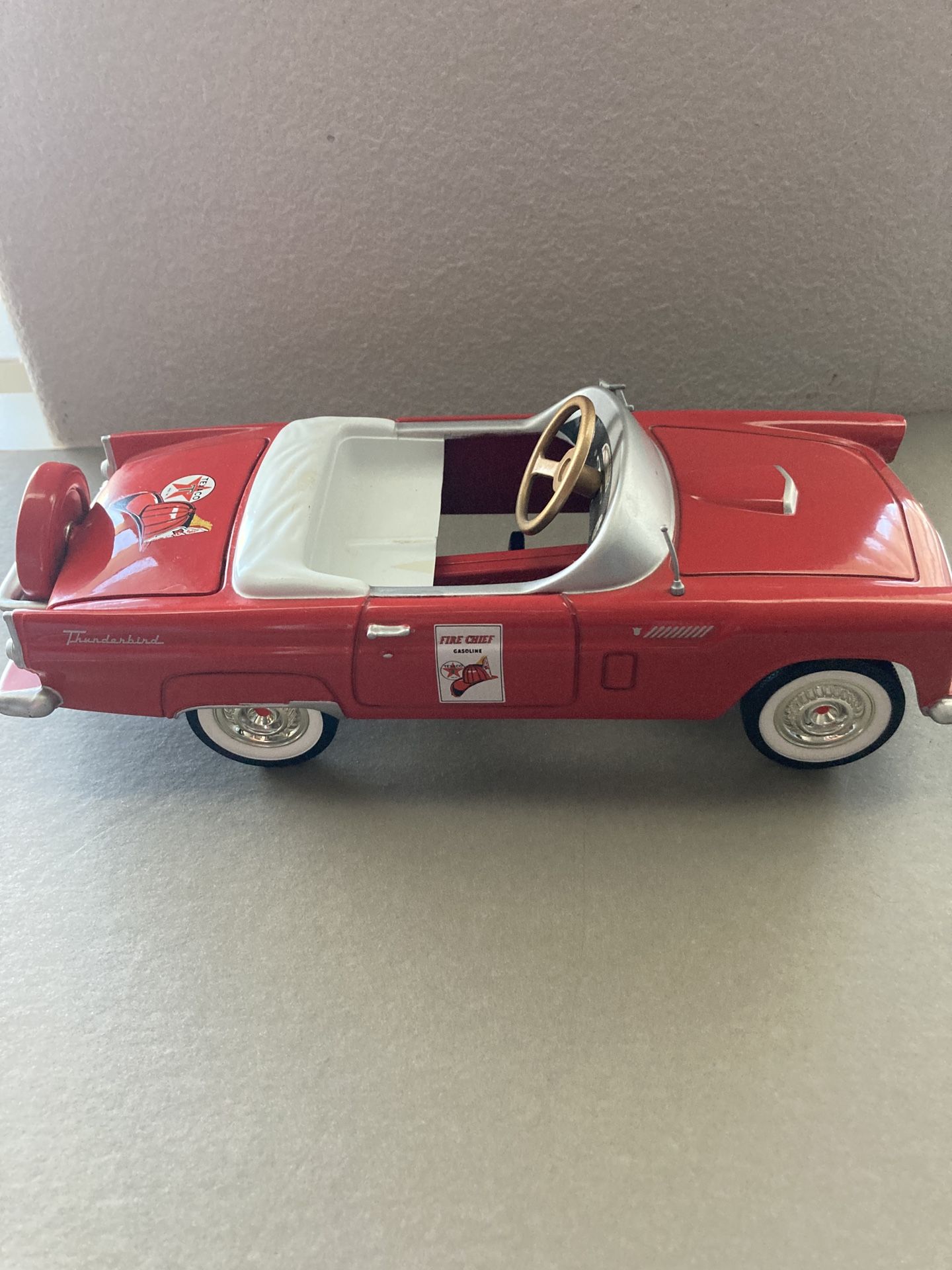 Vintage Gearbox Texaco 1956 Ford Thunderbird die-cast pedal car replica, in great shape.