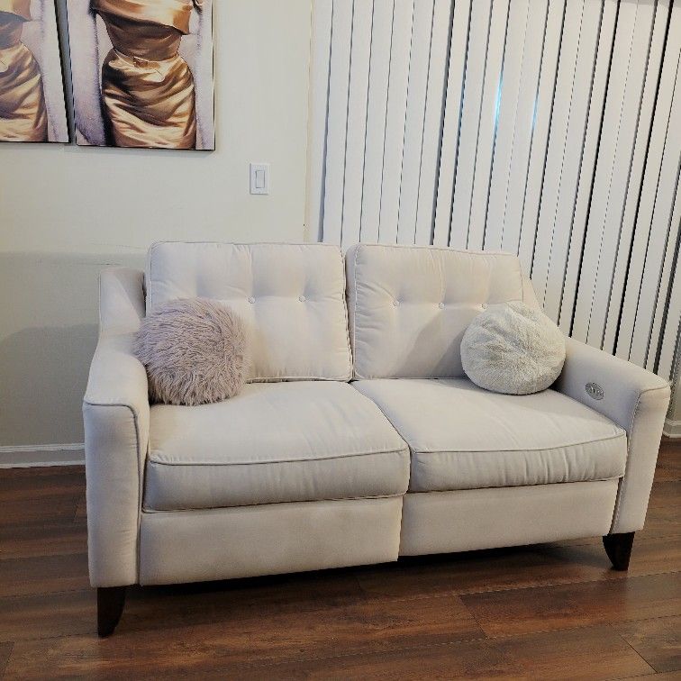 Beautiful and comfortable cream color Power Recliner with USB port from Ultra-Mek inc furniture Originally $1,200 It needs a little bit of cleaning Very good condition