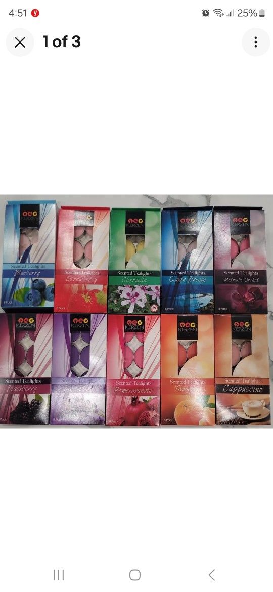 Around 2500 packs of luminessence scented tea candles, 8 per pack. Brand new. Various scents. Give me a reasonable offer and they are yours. Thanks for looking. Eddie
