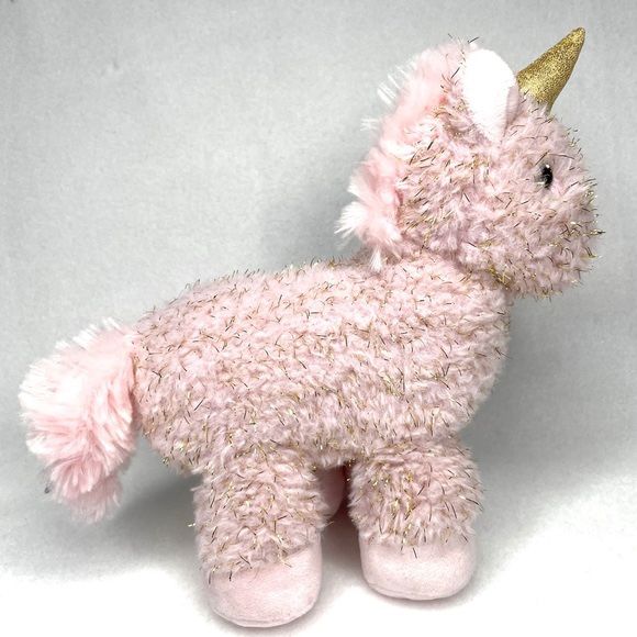 "Manhattan Toy Pink Unicorn Plush Mon Ami Tinsel Glitter 9” NWT From smoke free home."