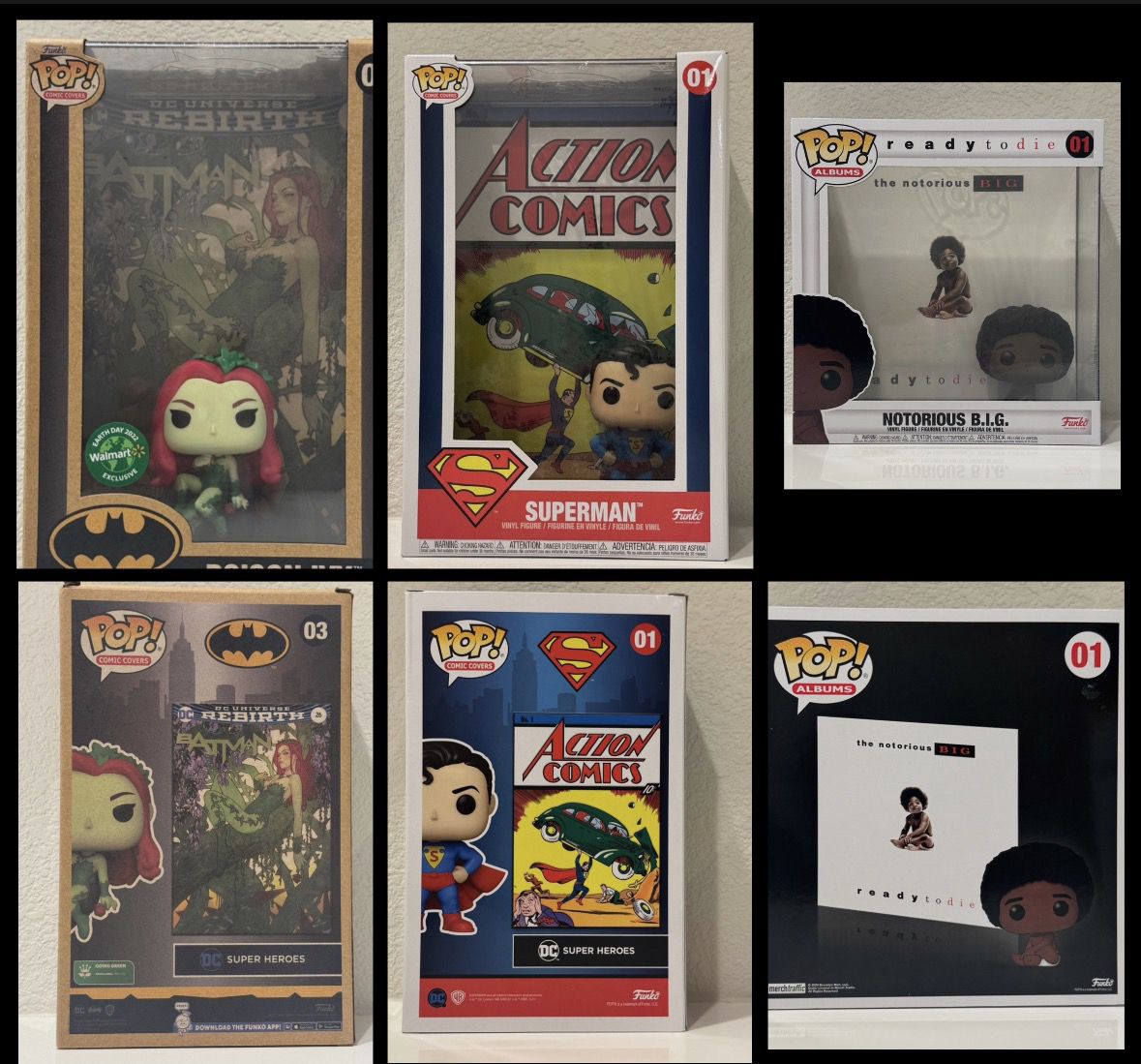Funko Pop! $10 each - Poison Ivy, Superman, Notorious BIG