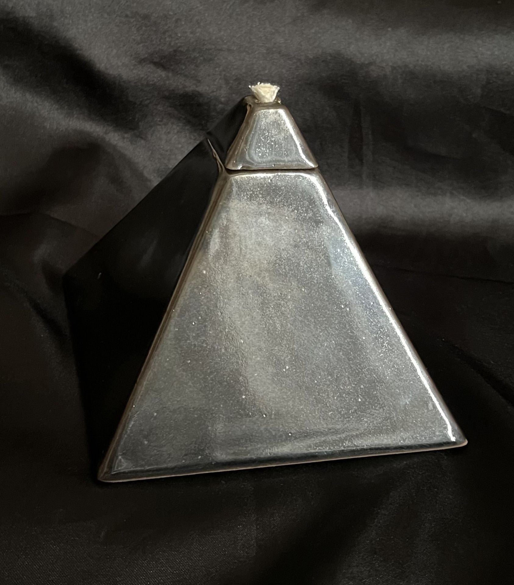 Unique Black Pyramid Clay Oil Lamp Iridescent Ceramic Glaze 4” Tall 4.5” Wide