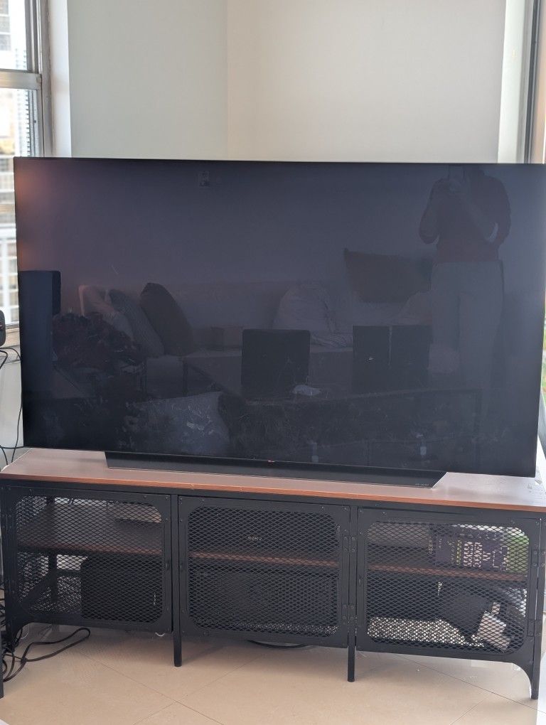 IKEA FJÄLLBO TV stand in black metal and wood finish. Very sturdy and great for TVs, media consoles, or storage. ⚠️ Please note: the top surface has sun fading / discoloration from being near a window. This is cosmetic only and does not affect functionality (see close-up photos). Details: Metal frame with wood shelves Mesh cabinet doors Industrial / modern style Clean, solid, no wobbling Pickup: Aventura Cash / Zelle / Venmo Message if interested.