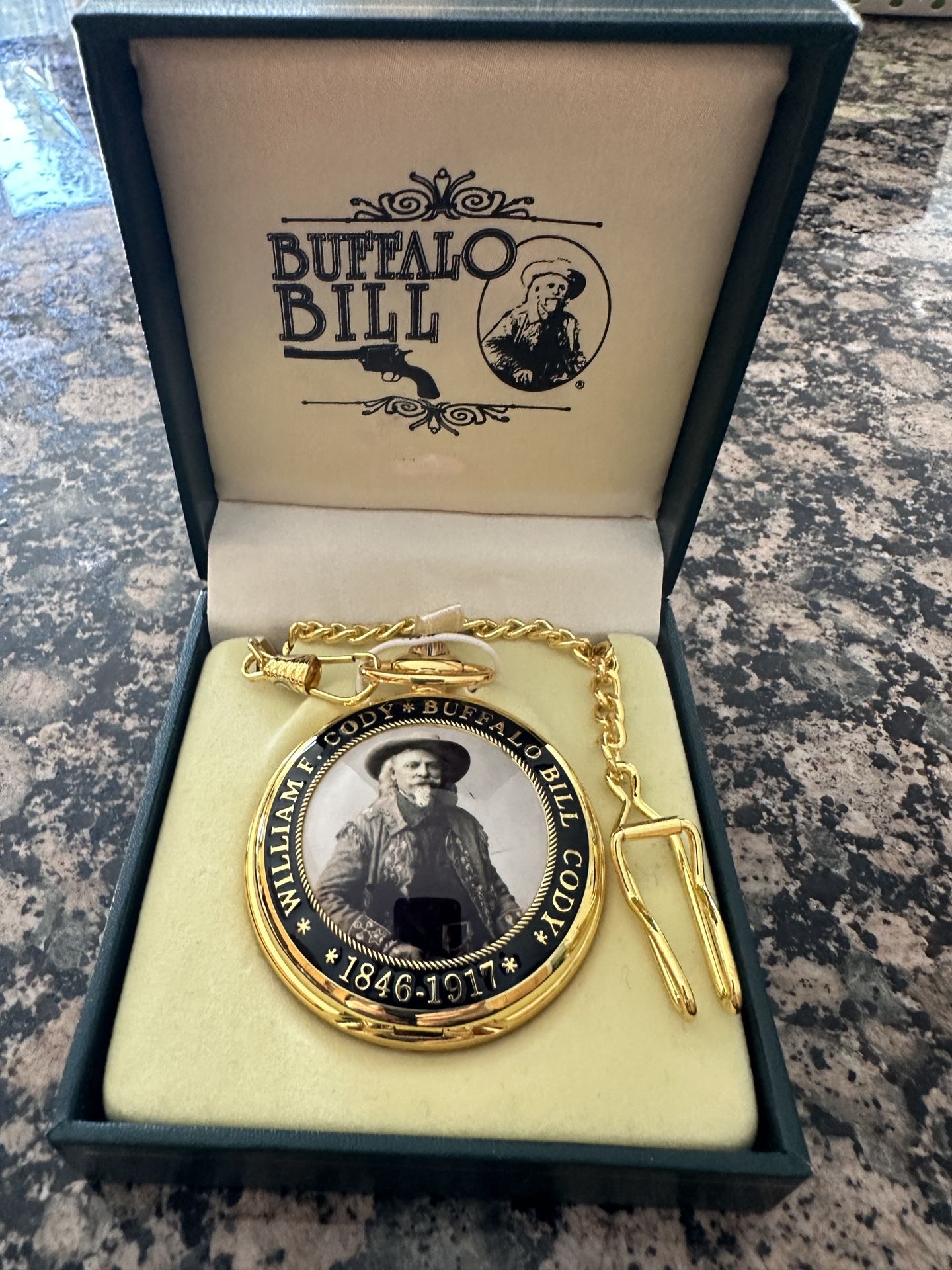Buffalo Bill Gold Tone Pocket Watch With Chain