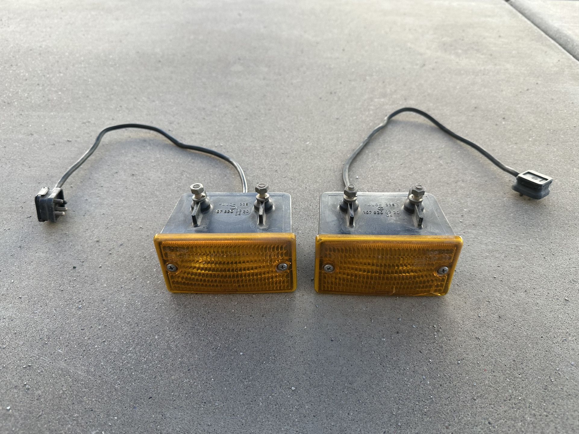 If you see this ad then item is available messages just asking if item is available will be ignored. Selling as a pair only. OEM Pair of Front Turn Signal Lights for Mercedes Benz SL and SLC models R107 C107 107. These would go under the front bumper and should fit models from 1972 to 1989 but please do your own research before purchasing. They were removed from a 1981 380SL US model. They have very small chips underneath but you won't see it when installed. Selling as a pair only. Pick up in Tempe