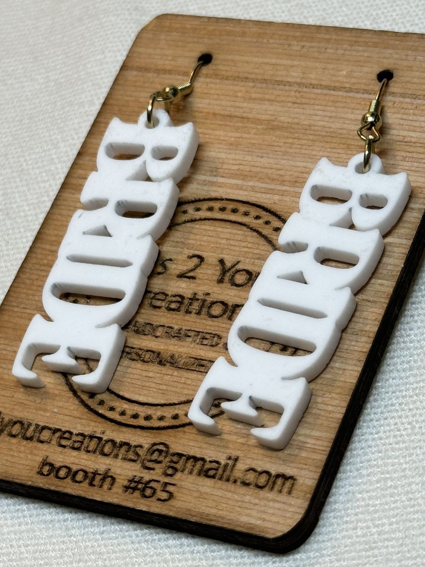 White Plexi Die Cut Bride Dangle Earrings Cash/pickup Mesquite