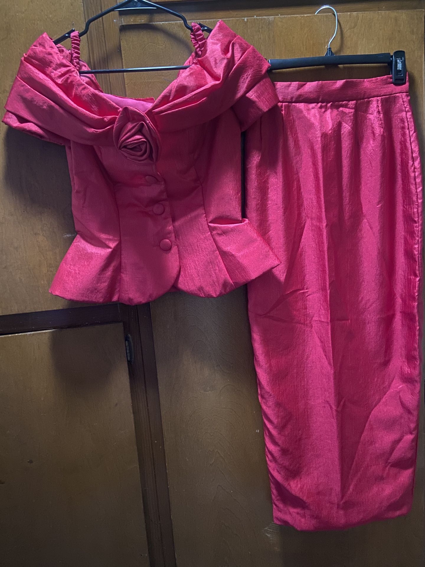 New. This unbranded yet Korean designer Artisan Crafted 2 pc Blouse & Long Skirt - 100% Silk Bust is S-M. Fits me at a size 4 (tried, never worn). Skirt is XS - 0-2. Measurements upon request. Try on in Monterey Park