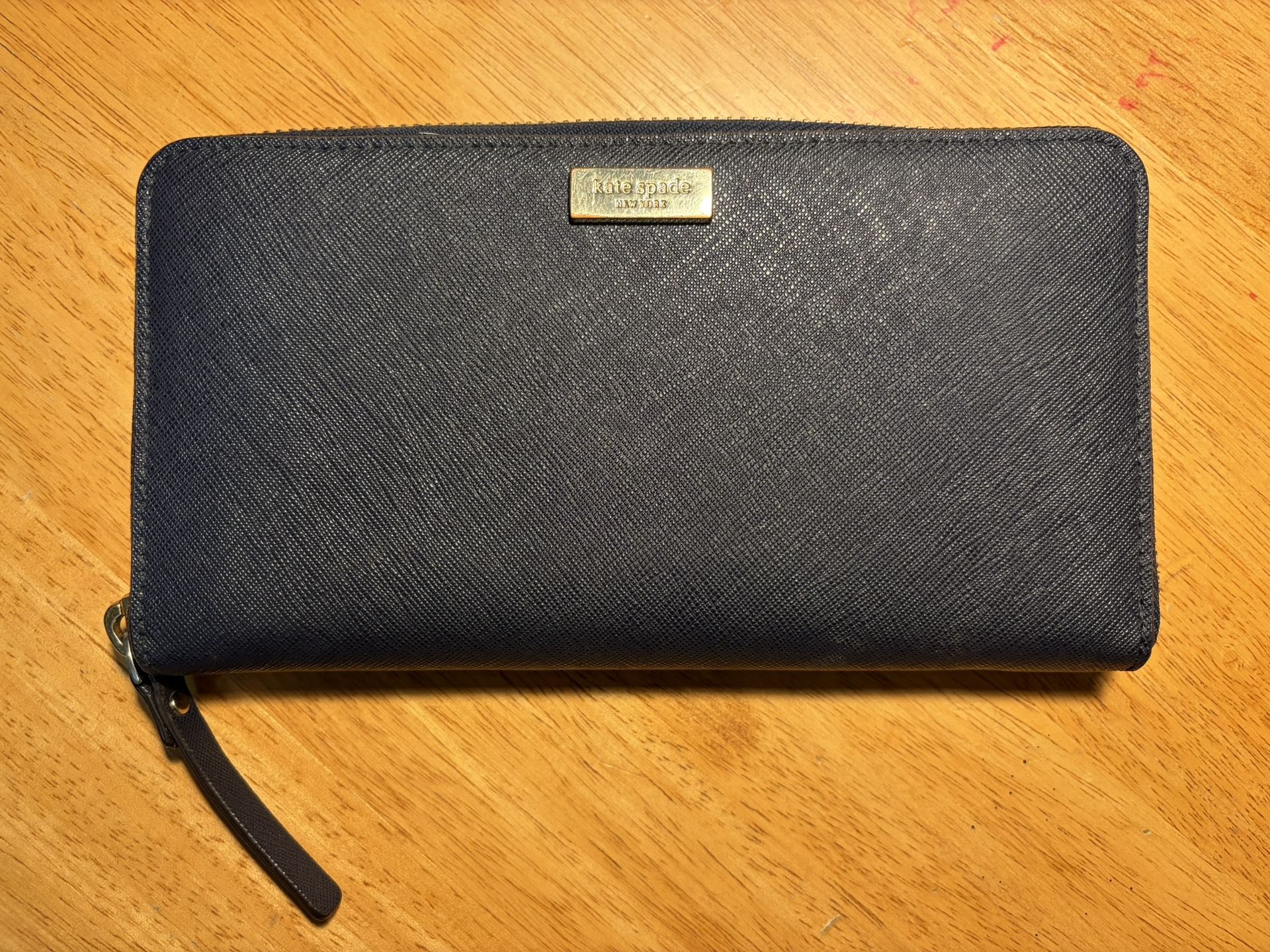Kate Spade Saffiano Black Leather Zippered Travel Wallet . New