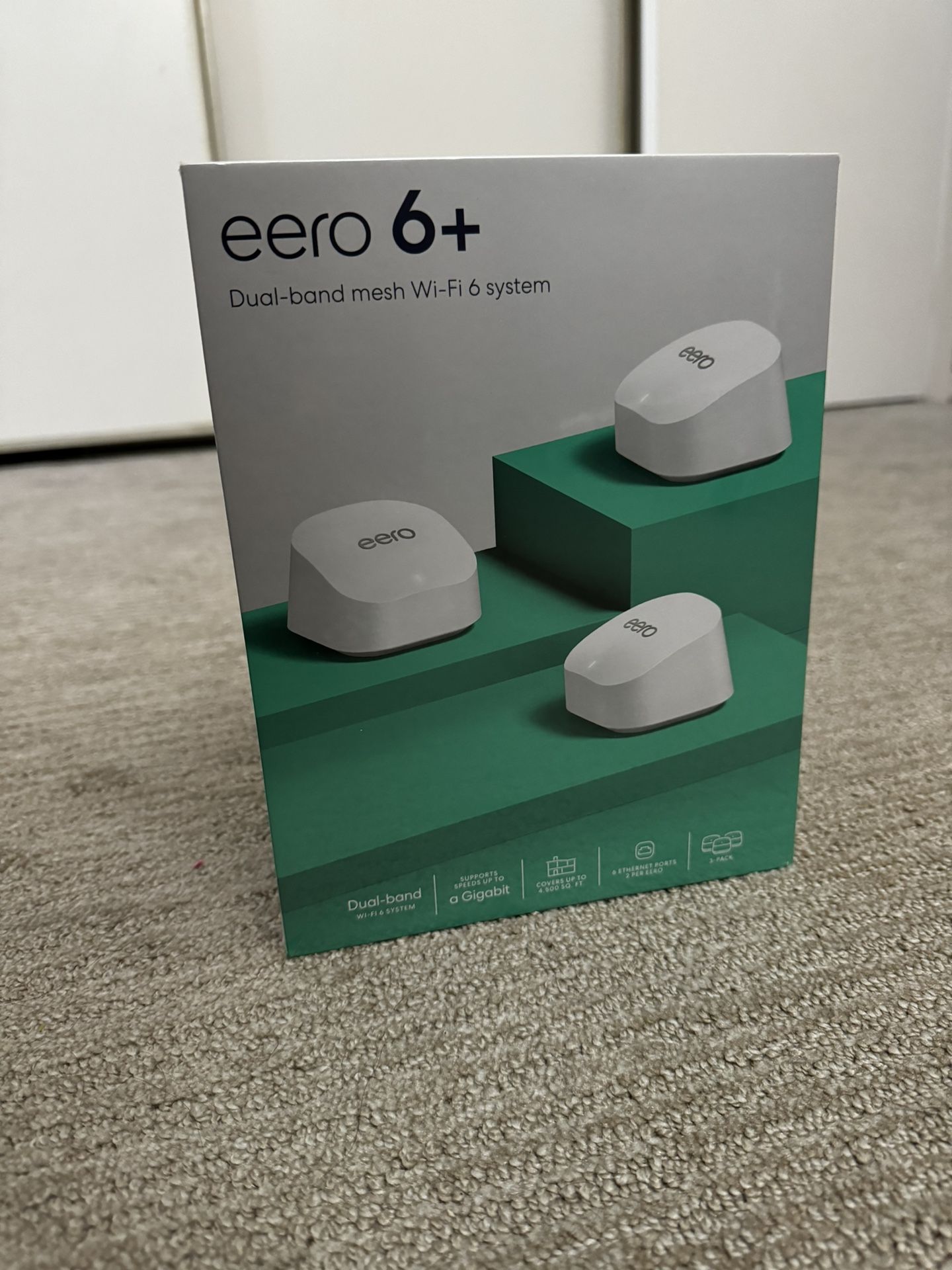 Set of 3 eero WiFi Mesh Routers Selling price - $250 OBO Online price - $300+ tax Brand new, sealed box Amazon link - https://offerup.co/faYXKzQFnY?$deeplink_path=/redirect/ GIGABIT SPEEDS FOR LESS - Supports wifi speeds up to a gigabit, without the premium price tag. eero 6+ is our most affordable gigabit system ever. Backward-compatible with previous-generation eero devices. WI-FI 6 GETS A BANDWIDTH BOOST - eero 6+ supports additional wifi bandwidth on the 160 MHz radio channel (that’s just wifi talk for faster connectivity). With the eero 6+, there’s enough bandwidth for the whole family to work, stream, and video chat—all at the same time. CONNECTIVITY YOU CAN COUNT ON - eero 6+ gives you all the connectivity with all the reliability. So you can work from home with confidence—and say goodbye to dropped video calls. Or keep your smart home running, even when you’re away. EXPERIENCE THE EERO TRUEMESH DIFFERENCE - eero’s patented TrueMesh technology intelligently routes traffic to reduce drop-offs and dead spots. SET UP IN MINUTES - The eero app guides you through setup and allows you to manage your network from anywhere. WORLD-CLASS CUSTOMER SUPPORT - Any questions? Our expert wifi troubleshooters are ready to help by phone in the US at (contact info removed) or by (contact info removed). GETS BETTER OVER TIME - Receive automatic updates to help keep your network safe and secure. Online security and additional network management features available via a separate subscription. BUILT-IN SMART HOME HUB - eero 6+ contains a smart home hub to connect compatible Thread and Zigbee devices on your network with Alexa, replacing the need to buy separate hubs.