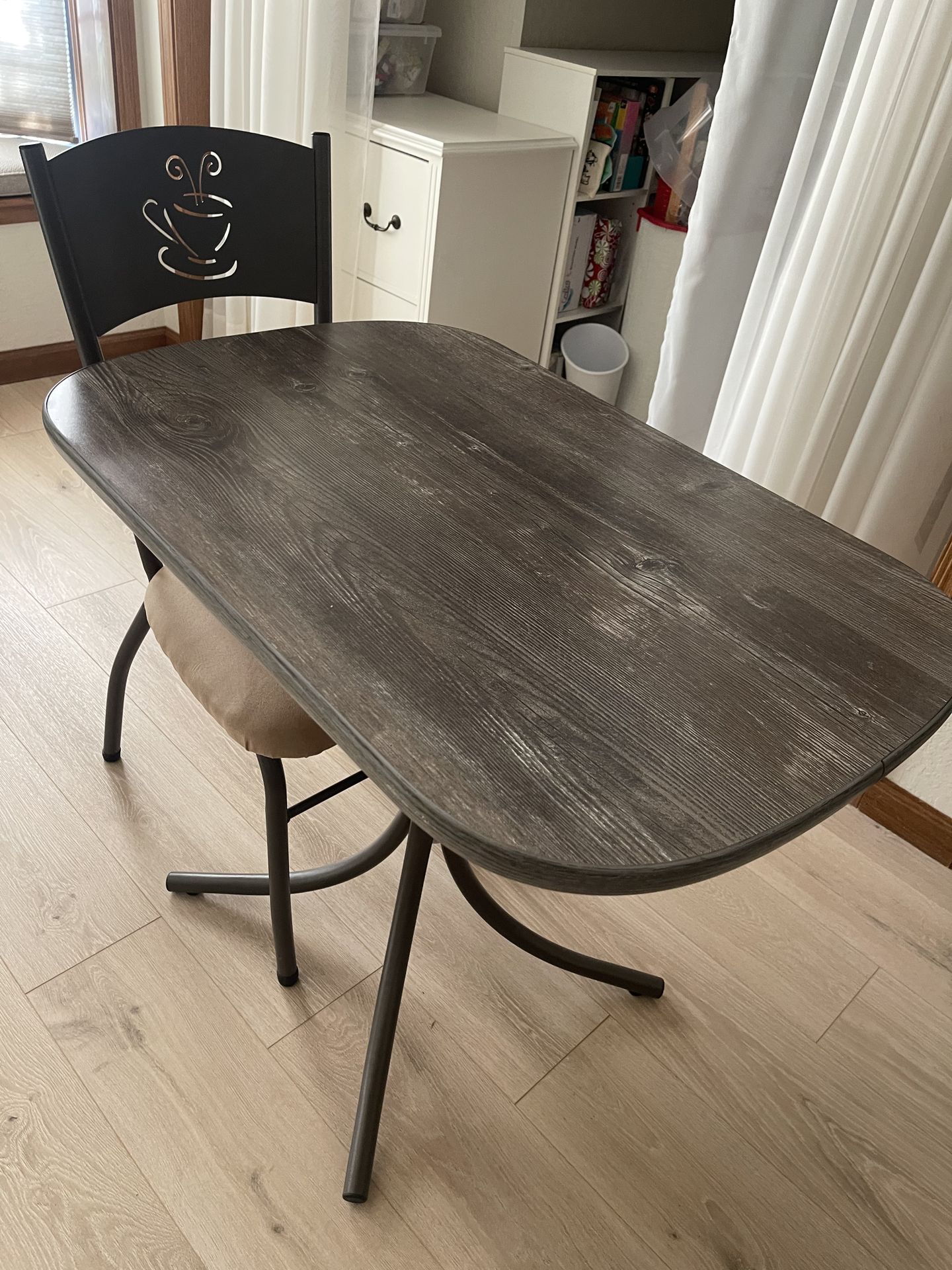 Bistro Table with one matching chair. Perfect for small dorm or apartment. Immaculate from a non smoking home. $30 obo