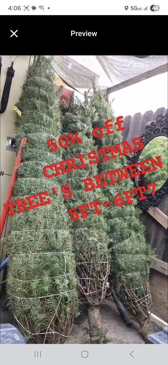 6ft 7 douglas fir christmas trees for sale 1/2 off $50.00 beautiful real trees 🌳 can drop off in Modesto or ready for pickup 2 left