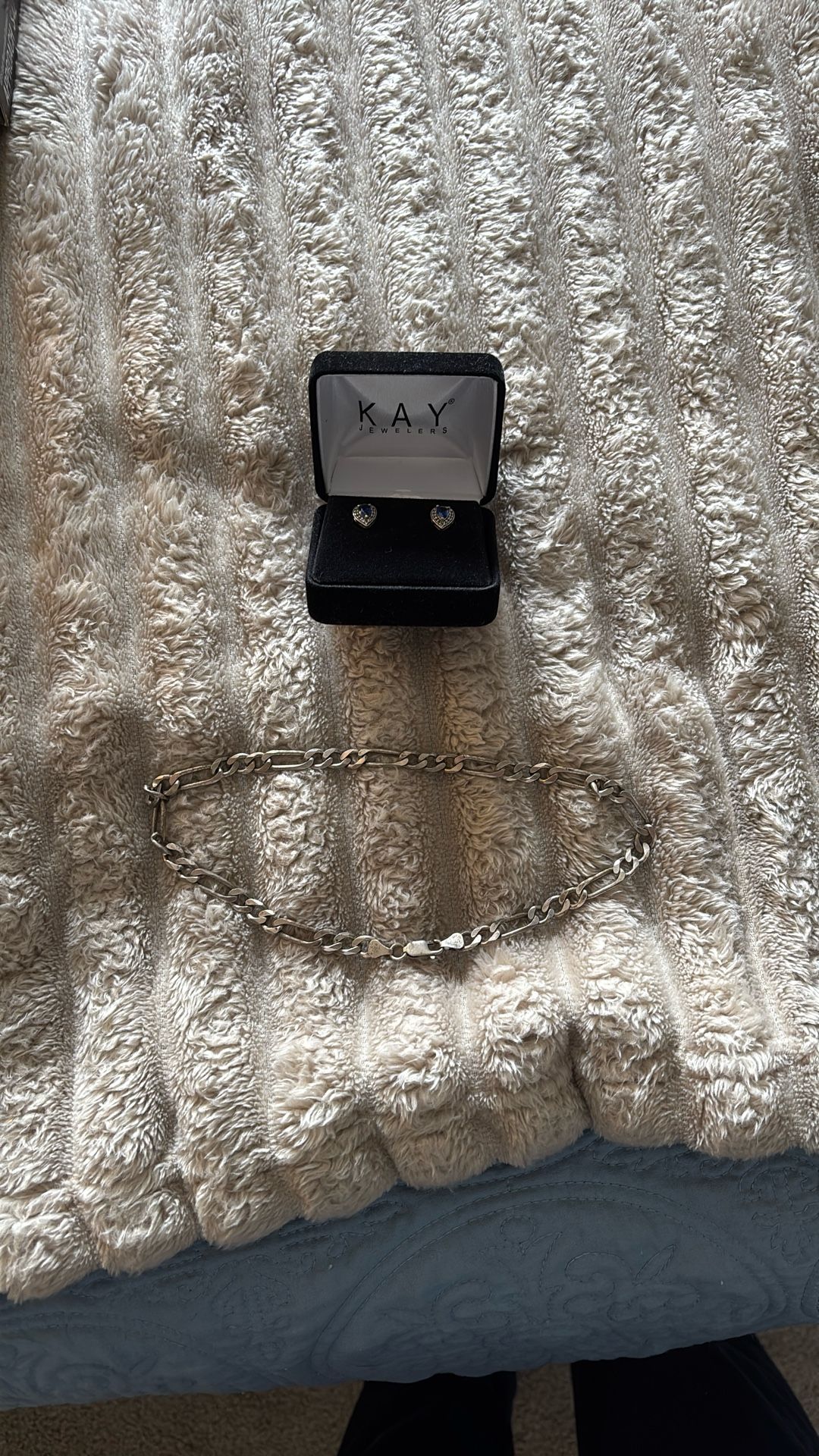 Earrings I bought years ago for $80 Had the necklace since I was 5. Hard to make out but 925 Italy.