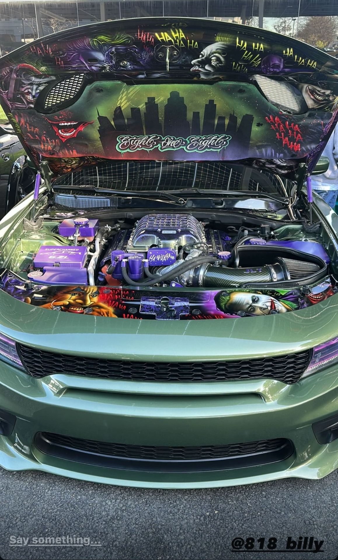 Selling my 2019 Dodge Charger SRT recently converted with all OEM parts to a widebody hellcat done the right way all parts came off an original widebody no aftermarket parts The car is complete nothing more to do but drive it .. it was Dyno tuned by @addictionmotorsports have all paperwork with #’s ..Parts added for tune 1200cc injectors , dual fuel system, upper and lower pulleys with green belt car runs on full e85 fuel , 4” aluminum drive shaft , 20x11 wheels with 100% rubber left. On them .. JLT cold air intake. Magnaflow Mod-X series cat back exhaust system with high flow cats .. Custom joker theme airbrushing done by @sile_ink. Air lift 3p air ride system with upgraded Viair Gen 2 dual 485c chrome compressors installed by@sinister_custom_concepts All new double diamond stiched interior. Billet technologies engine covers with dual catch can set up. Lots of hydro dipped parts.. Im sure there’s a lot im leaving out too much to list everything .. selling to buy something more practical.. Have all stock parts that came off the car that I will throw in on the deal.. Looking for possible trade I’m in to oldies that are done right and of equal value … or lesser plus cash .. let me know what you got …