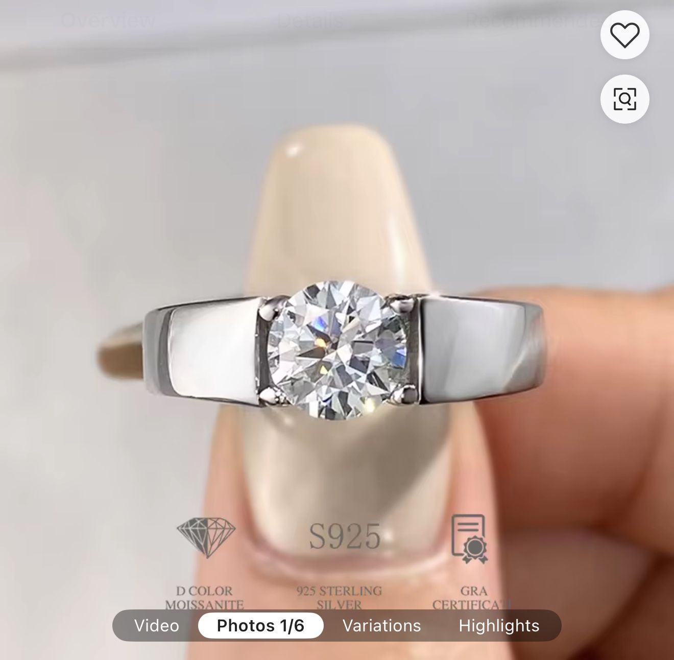 925 Sterling Silver Gold Plated GRA Certified 1 Carat Moissanite Adjustable Ring D Color. The great thing about an adjustable ring is that on those days in the summer when your hands swell, you can adjust the ring easily.