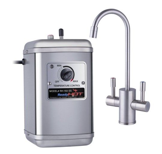 Ready Hot Compact Water Heater, Manual Temperature Control, Two Handle Brushed Nickel Faucet Included