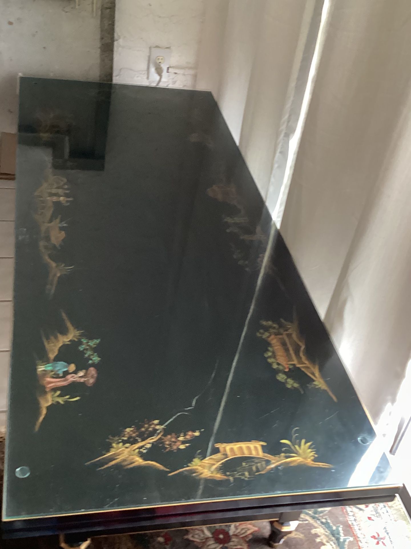 Coffee Table/ vintage/ rosewood/ Chinese Design/ protective glass top: $500.00 or best offer