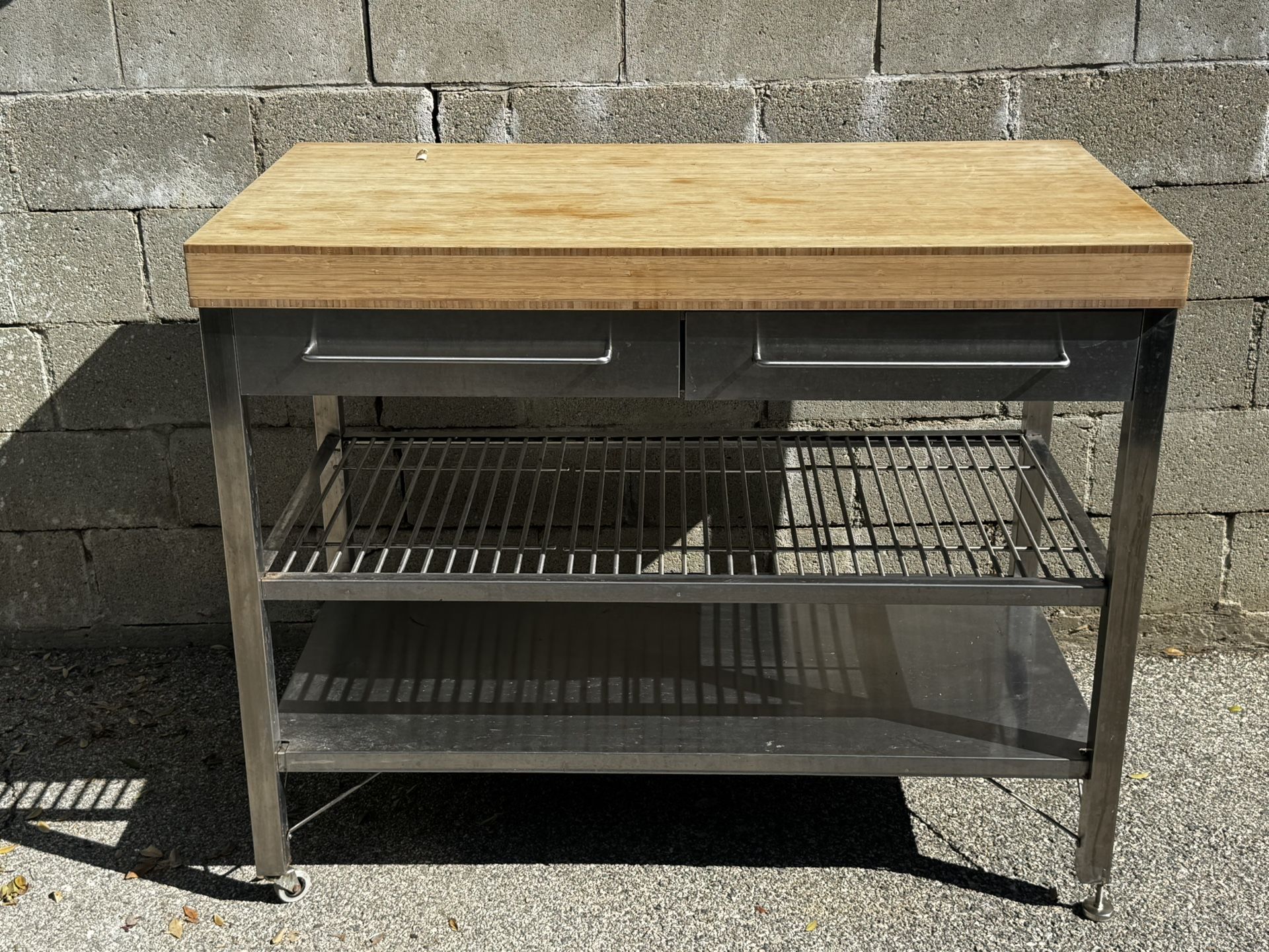 Used Ikea Rimforsa Stainless Steel Kitchen Work Island Table - still in great condition, missing one wheel, easy to replace. https://offerup.com/redirect/?o=aHR0cHM6Ly93d3cuaWtlYS5jb20vdXMvZW4vcC9yaW1mb3JzYS13b3JrLWJlbmNoLXN0YWlubGVzcy1zdGVlbC1iYW1ib28tNjAzOTk0MTIv Please be able to pickup, don’t have a car Thanks :)