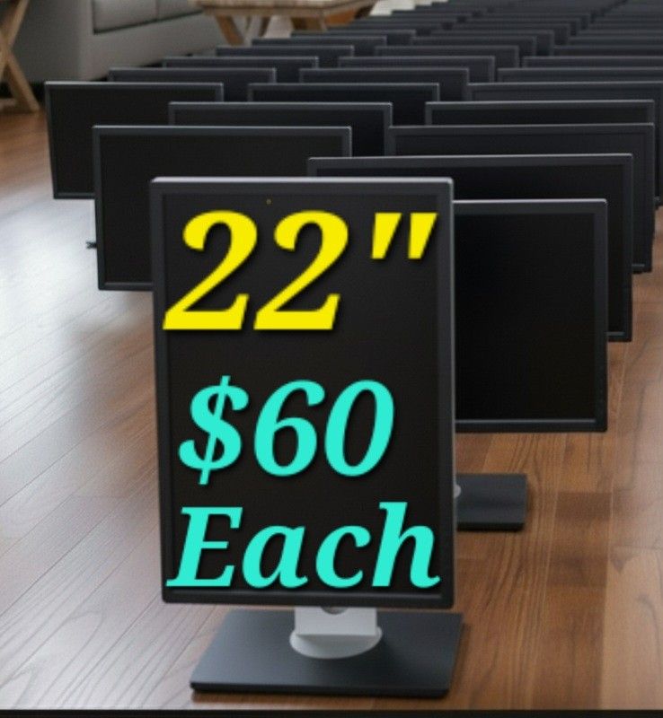 22" Dell Monitors - $60 Each Horizontal or Vertical Viewing Positions DVI/VGA - HDMI Compatible Includes a power cord and cables of choice.
