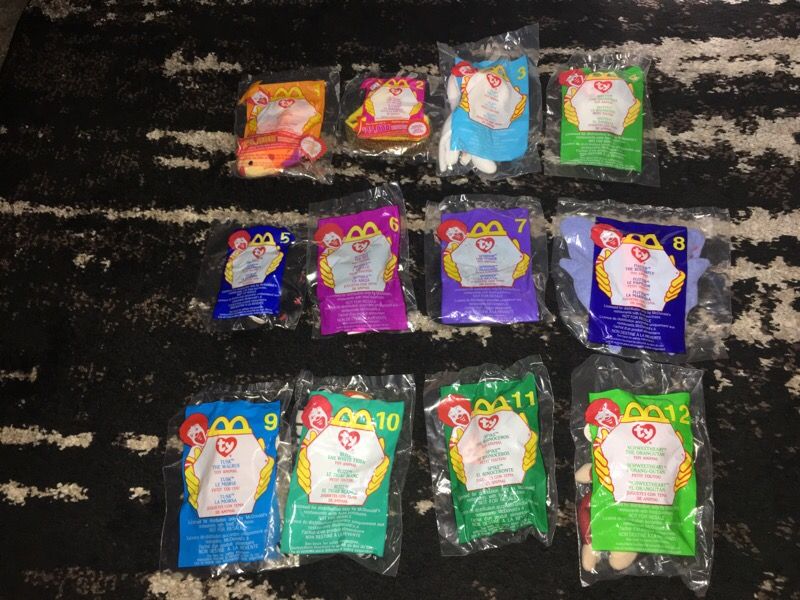 New in original packaging. Set (12) of teenie beanie babies from Mcdonalds. Year 2000.