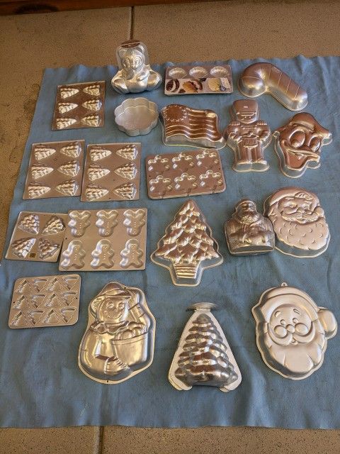 Lot of 18 Wilton baking pans in good condition.( Pic shows 20 - sit up bear and 3d Xmas tree were sold) $45 for all 18 Please contact me if interested in single pans. My location for cash purchase and pick up are Tempe or Fountain Hills.