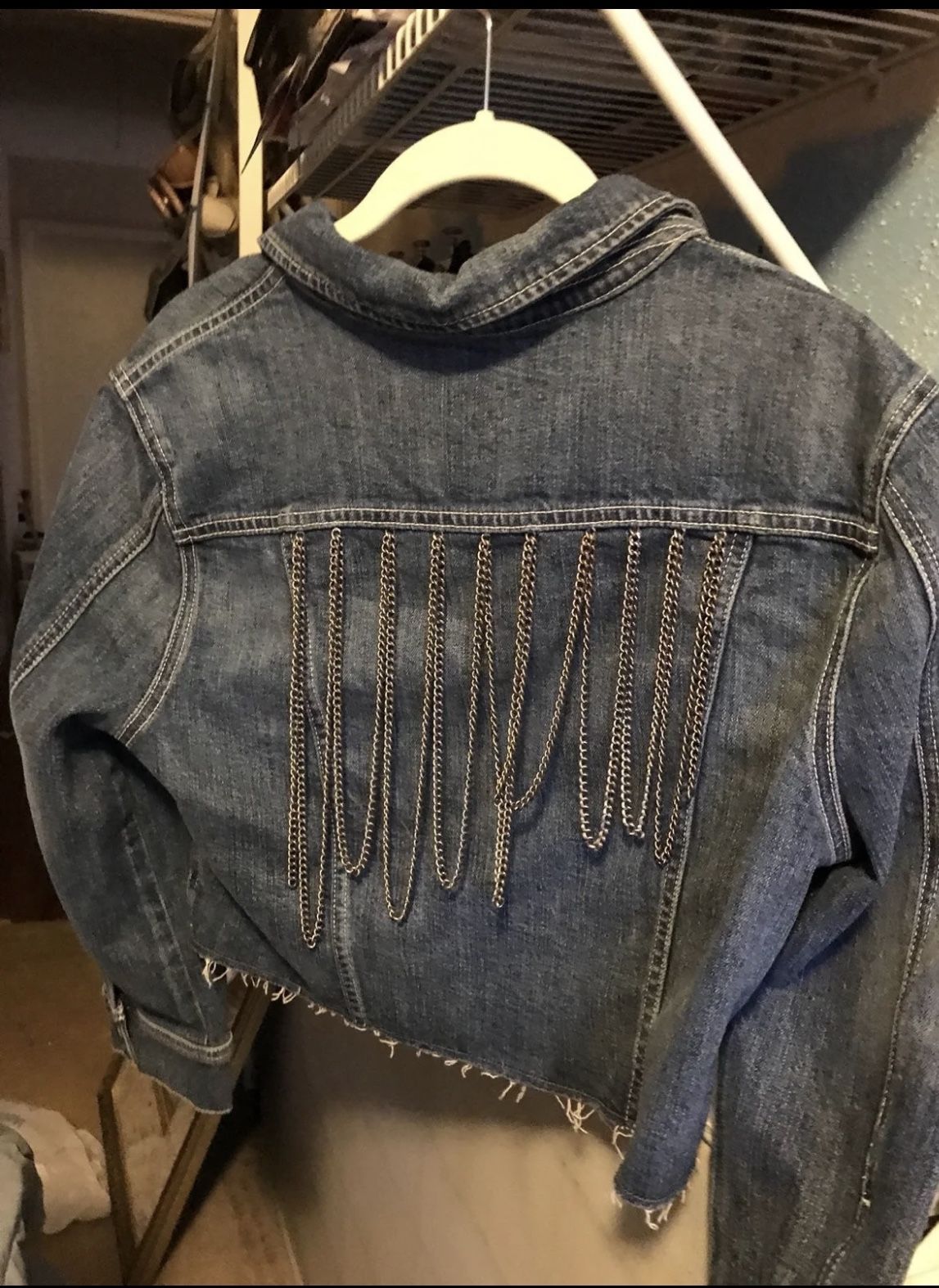 Denim jacket in very good condition. Unique and style is discontinued. Size L but runs small.
