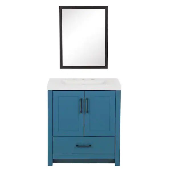 Radien 30.50 in. W x 18.7 in. D x 34.14 in. H Single Sink Bath Vanity in Brown with White Top and Mirror