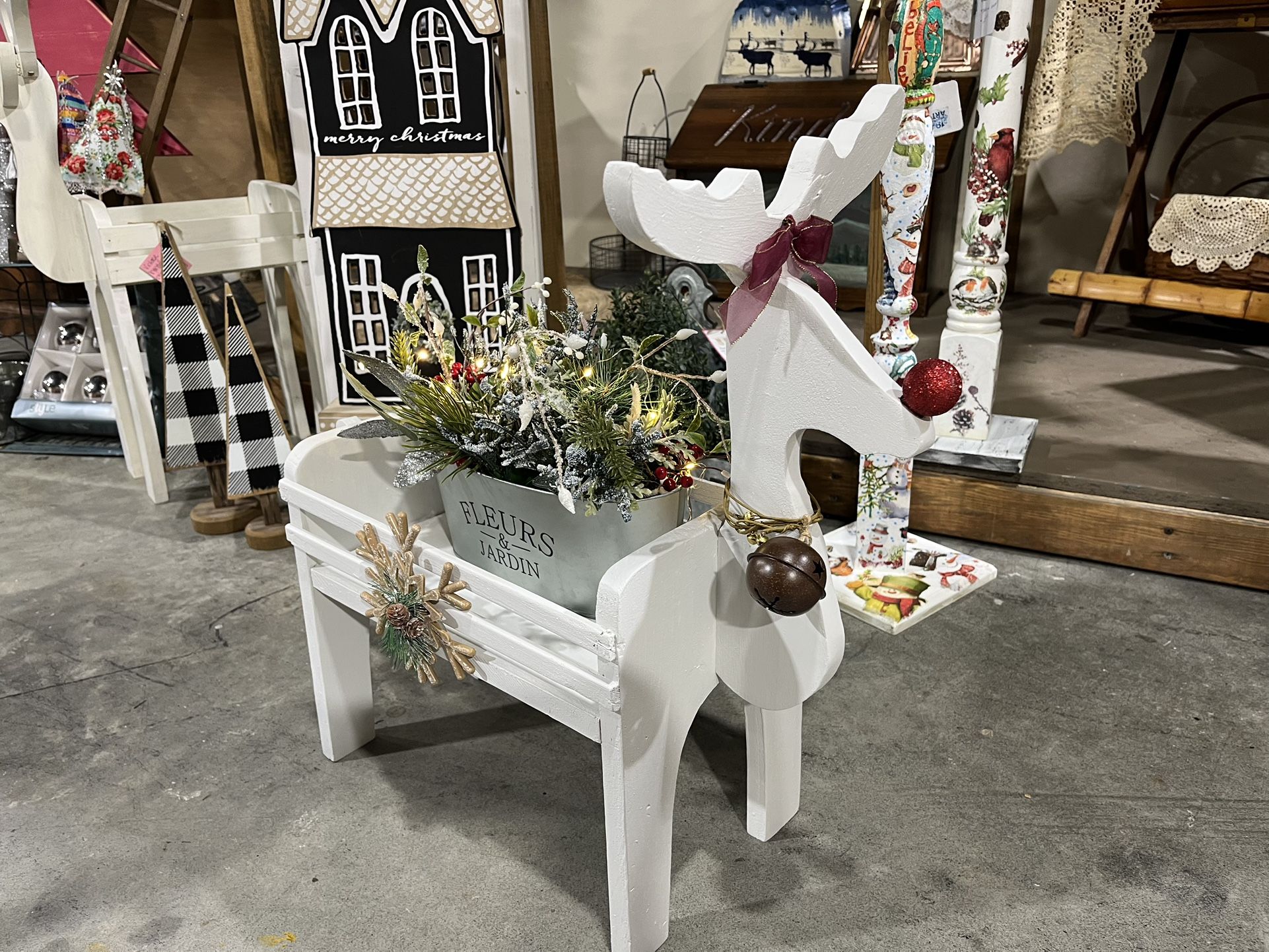 Hand Painted White Reindeer w/ Light-up Floral Arrangement 🎄 $52 Perfect to put under a covered porch or by a fire place. Lights up!!!! Available at “The Elephant’s Trunk” in Chester, VA Call/message me or the store to make sure it’s available. My is booth @thriftytreasuresupcycled located in the back room to the left when you walk in. I sell home decor, beauty products, jewelry, seasonal decor, vintage and more! Please feel free to reach out if you have any questions:) The Elephant’s Trunk hours SUN 10-4 Mon- Sat 10-6 Location: 10410 Iron Bridge Road, Chester, VA 23831 Phone # (contact info removed)